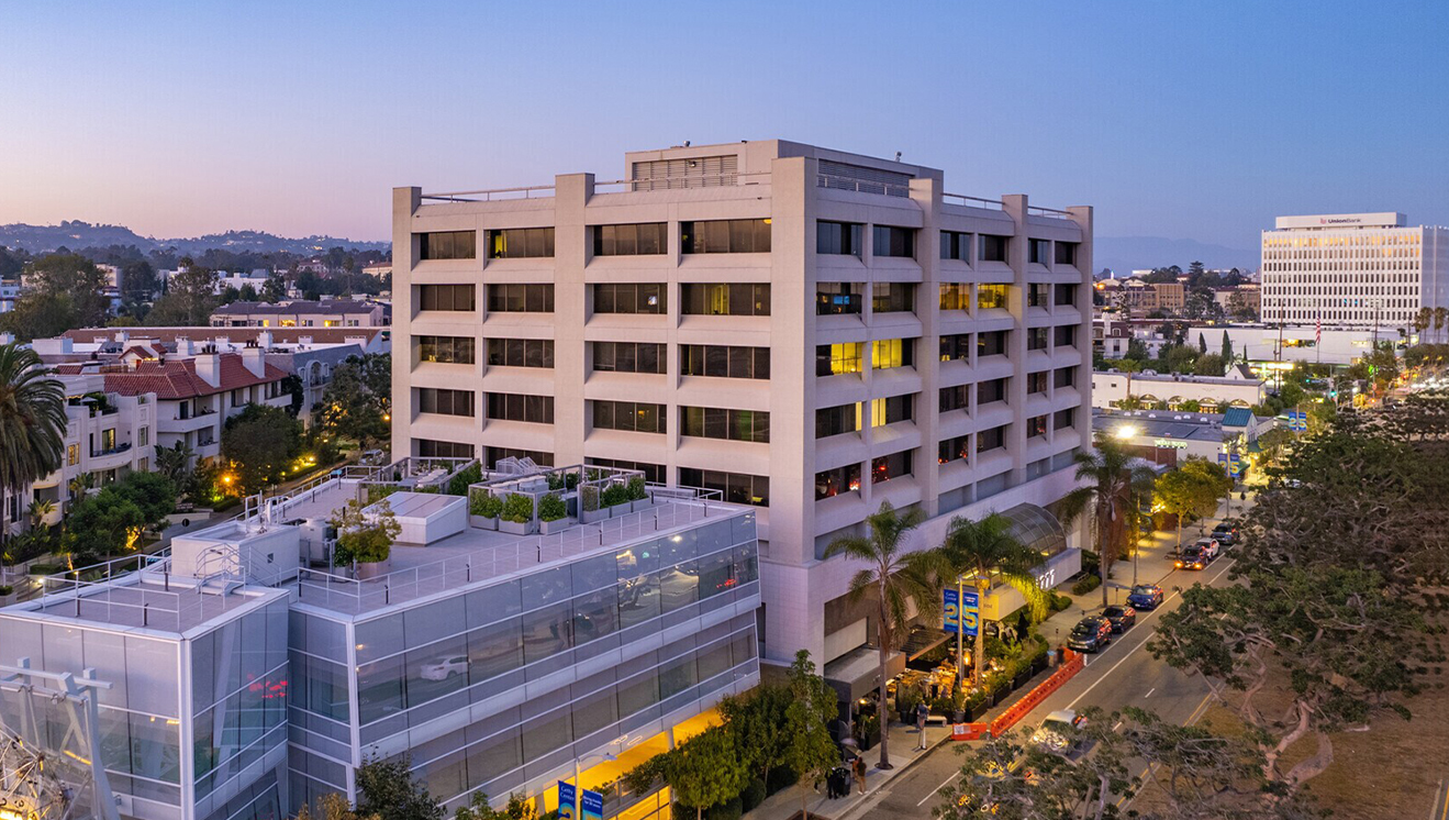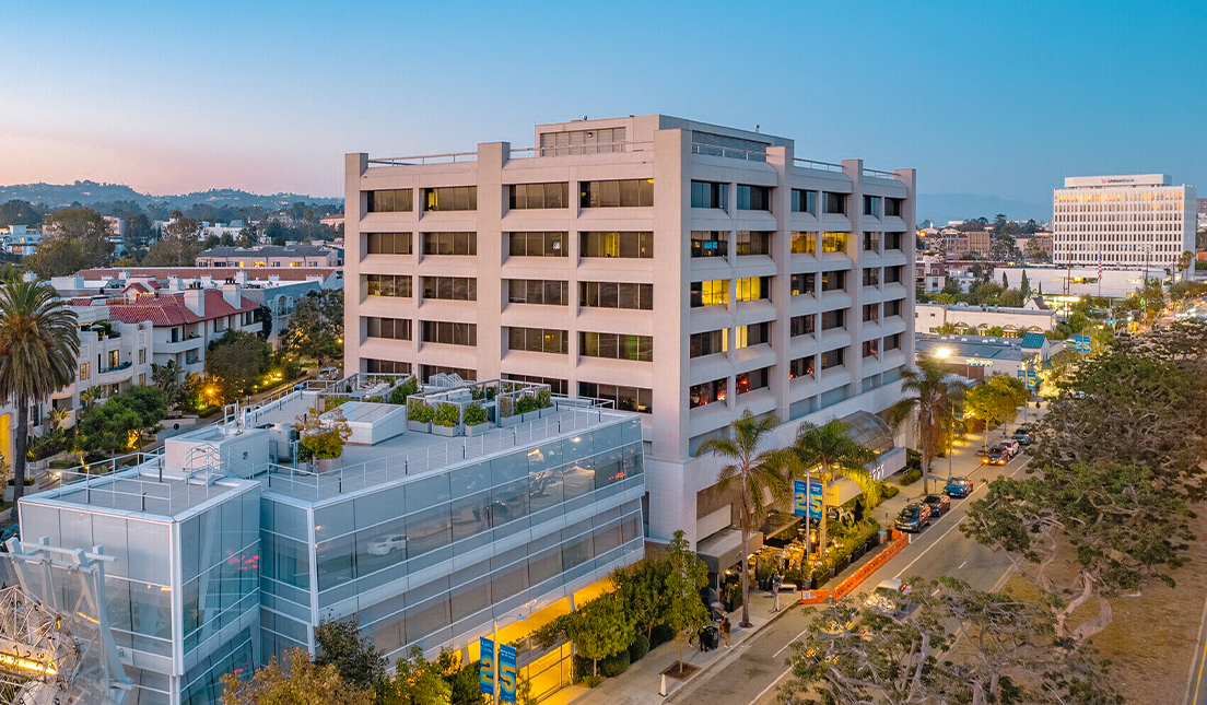 11777 San Vicente, a Class-A office property nestled in the heart of Brentwood and anchored by the renowned Katsuya restaurant. This 9-story property not only provides a premier business address but also boasts sweeping views of Los Angeles and the adjacent Santa Monica Mountains, creating an inspiring work environment.