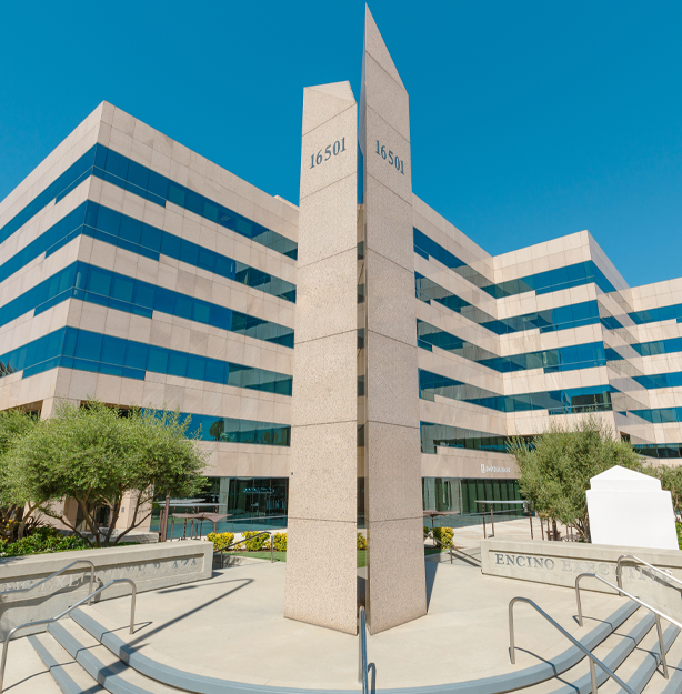 Valley Executive Tower, a commanding 21-story Class-A Sherman Oaks office building that boasts panoramic views of the San Fernando Valley and the surrounding mountains.