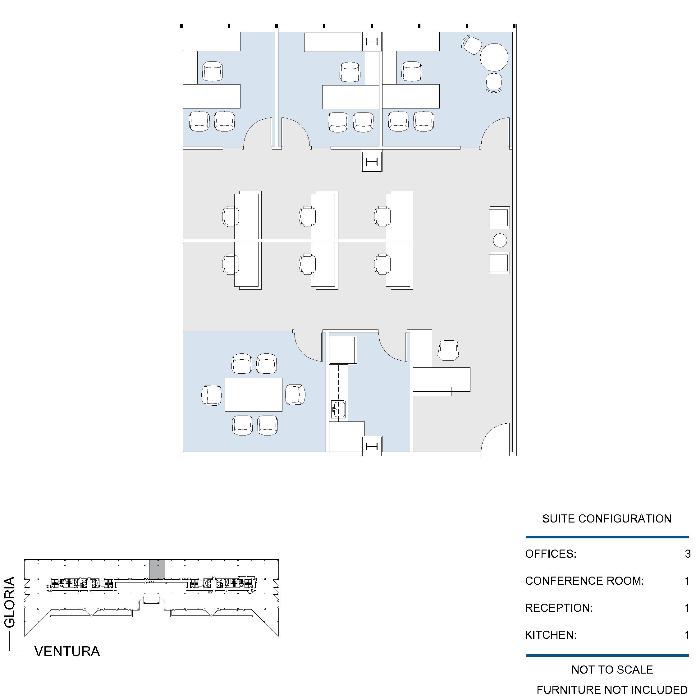 20 window offices, 3 windowline conference rooms, kitchen, storage closet, storage room, I.T. room, open work area and reception area.