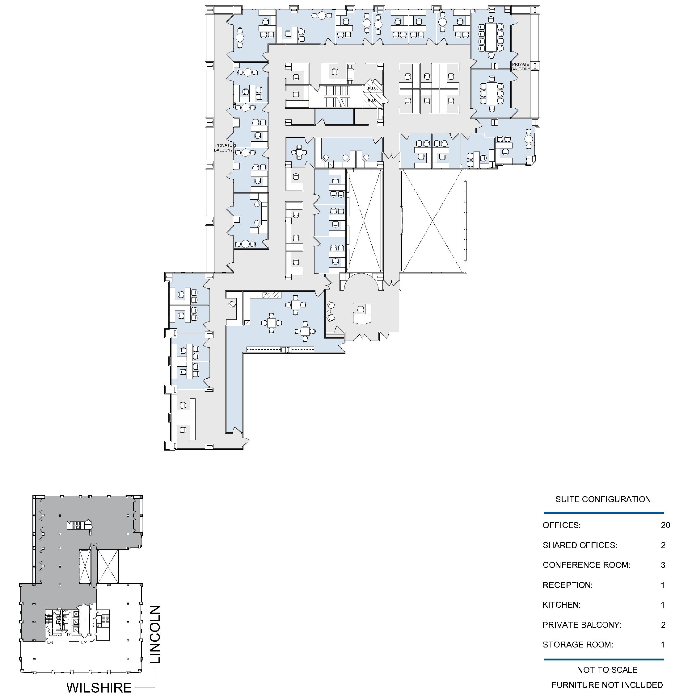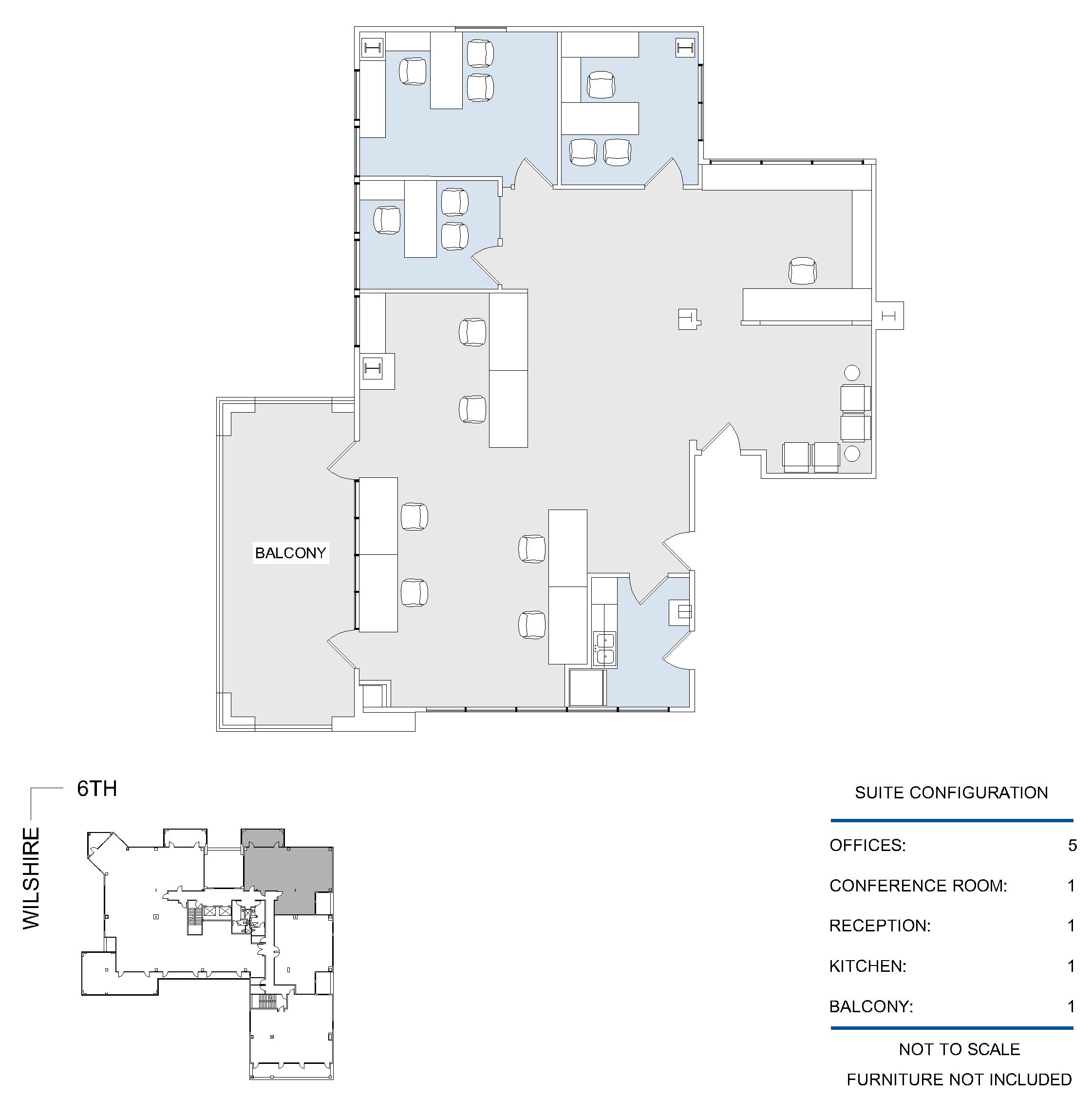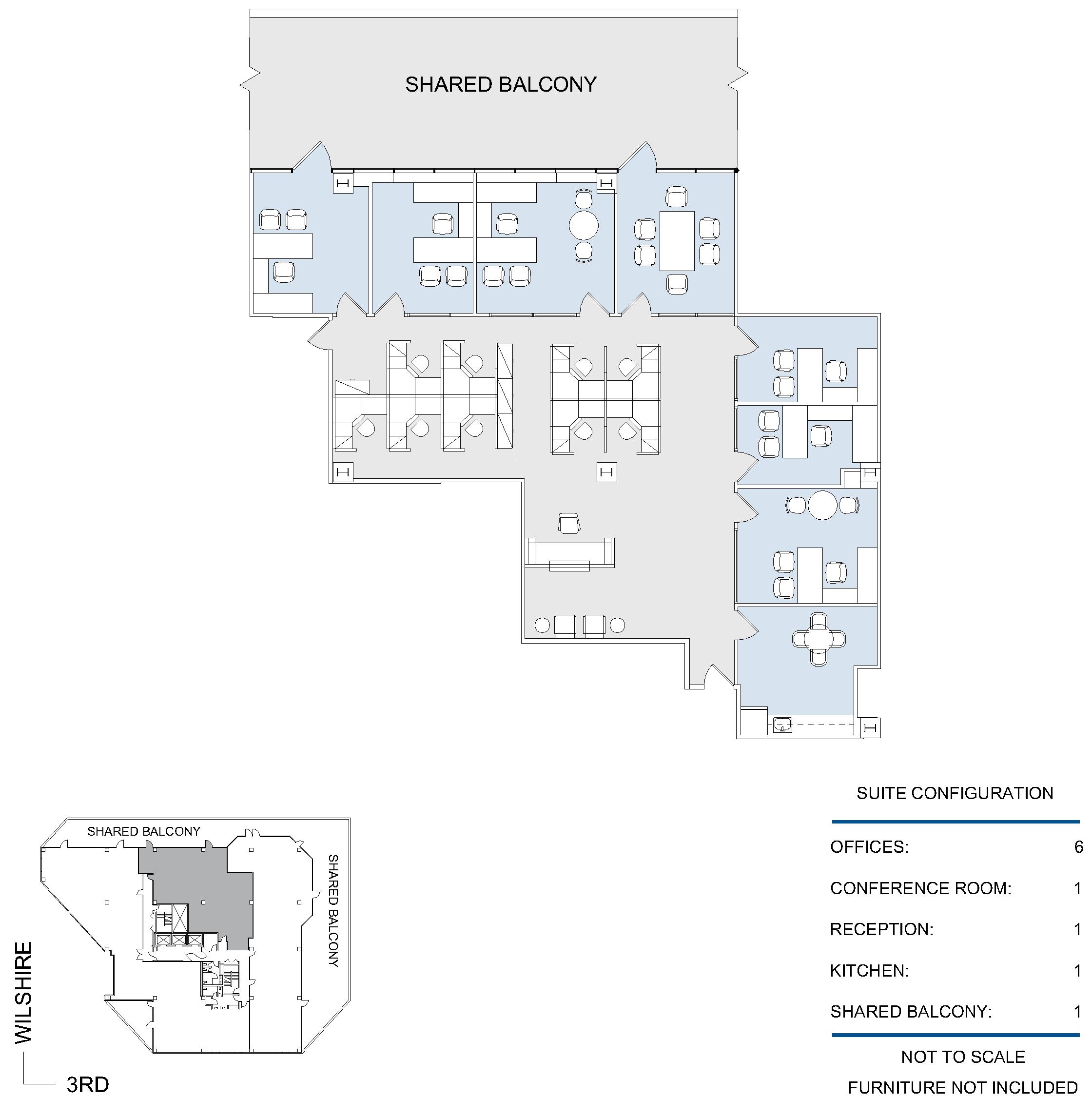 SPEC SUITE! 1 window office, 2 additional offices opening up to a private balcony, conference room, open work area, kitchen and reception area.