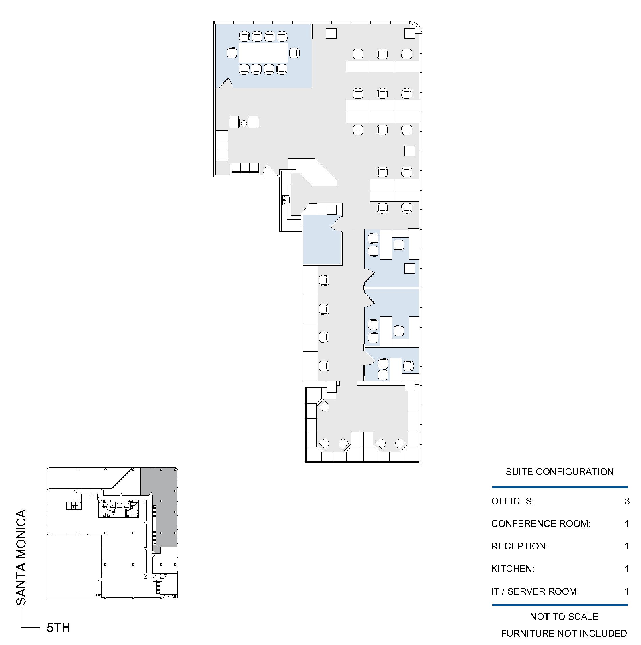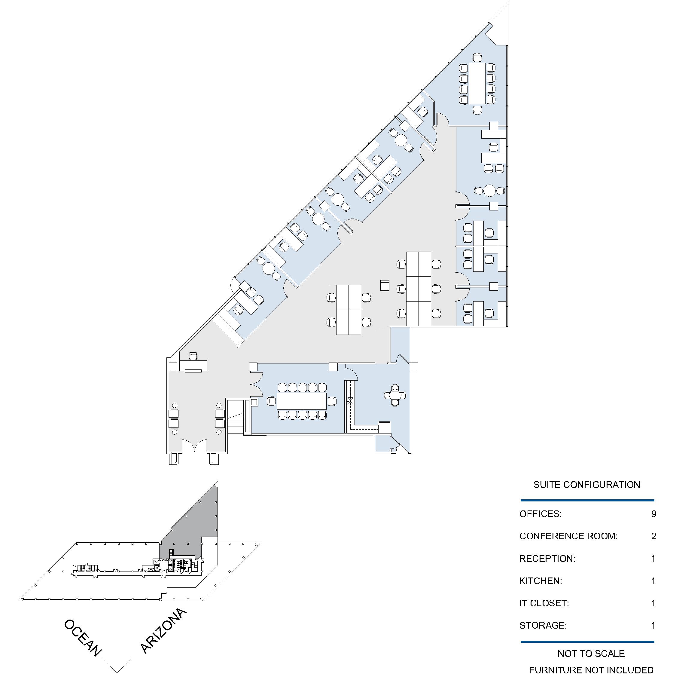 Outstanding Creative Space! Full Floor opportunity to relocate to the heart of downtown Santa Monica! 11 window offices, 2 conference rooms, open modern kitchen with island, server room, private restrooms and shower, 2 spacious storage closets, private balcony, several large open work areas, exposed ceilings, concrete flooring, built in cabinetry, modern light fixtures and built-in reception desk. Lots of natural light!