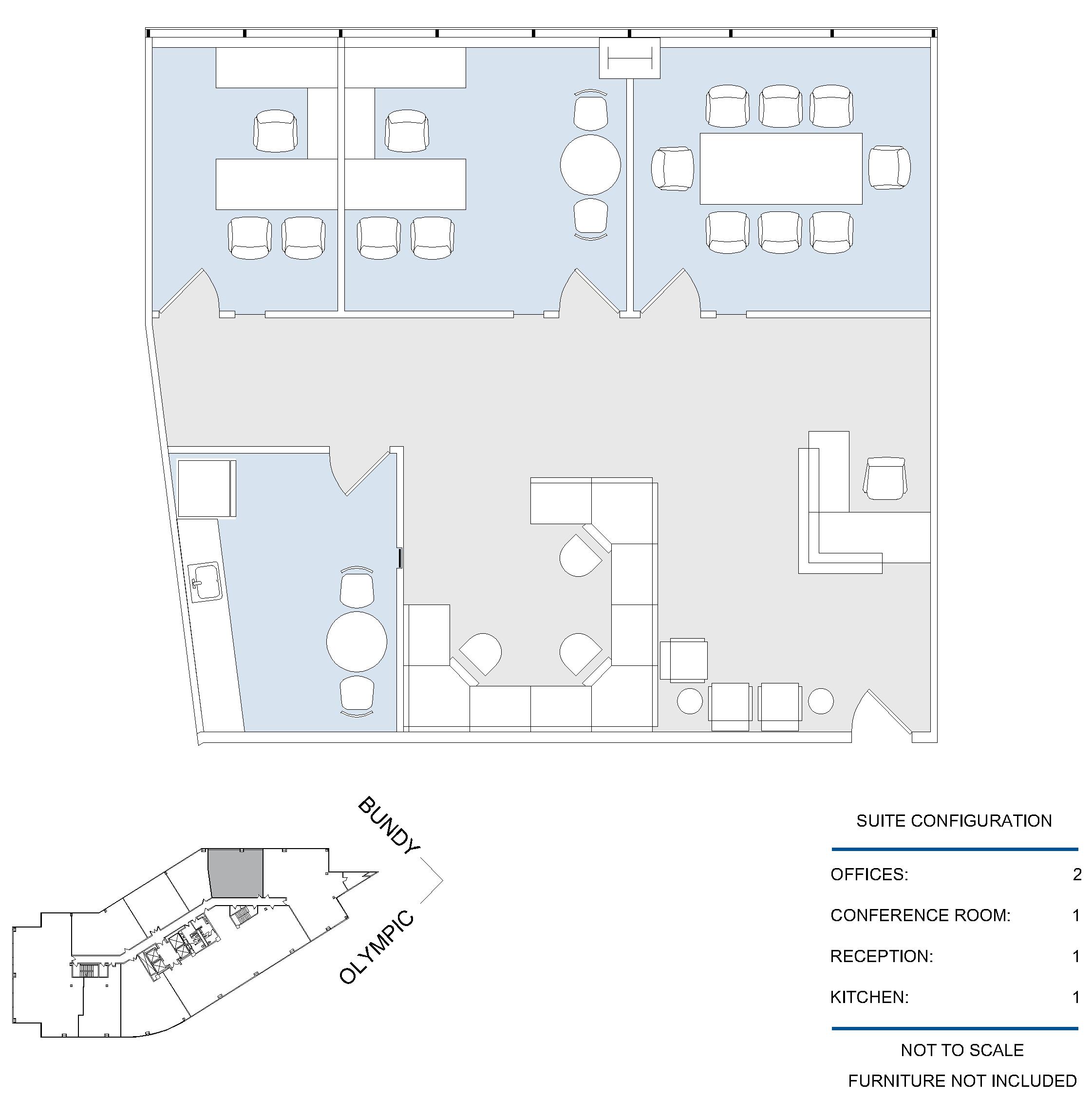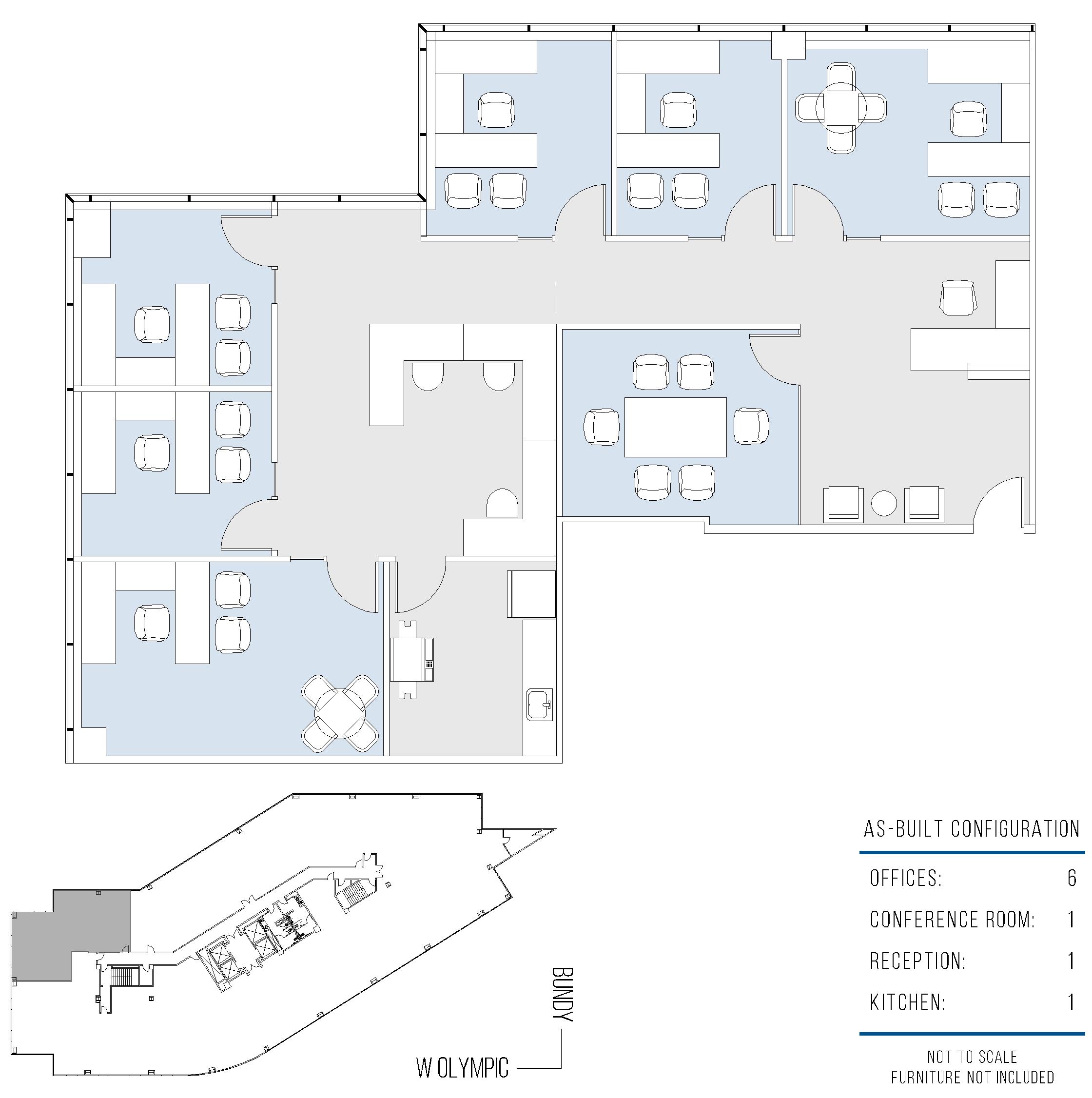 Move-in ready, Double door entry, Elevator ID, 6 window offices with views of west LA, large conference room, open work area, kitchen and reception area.