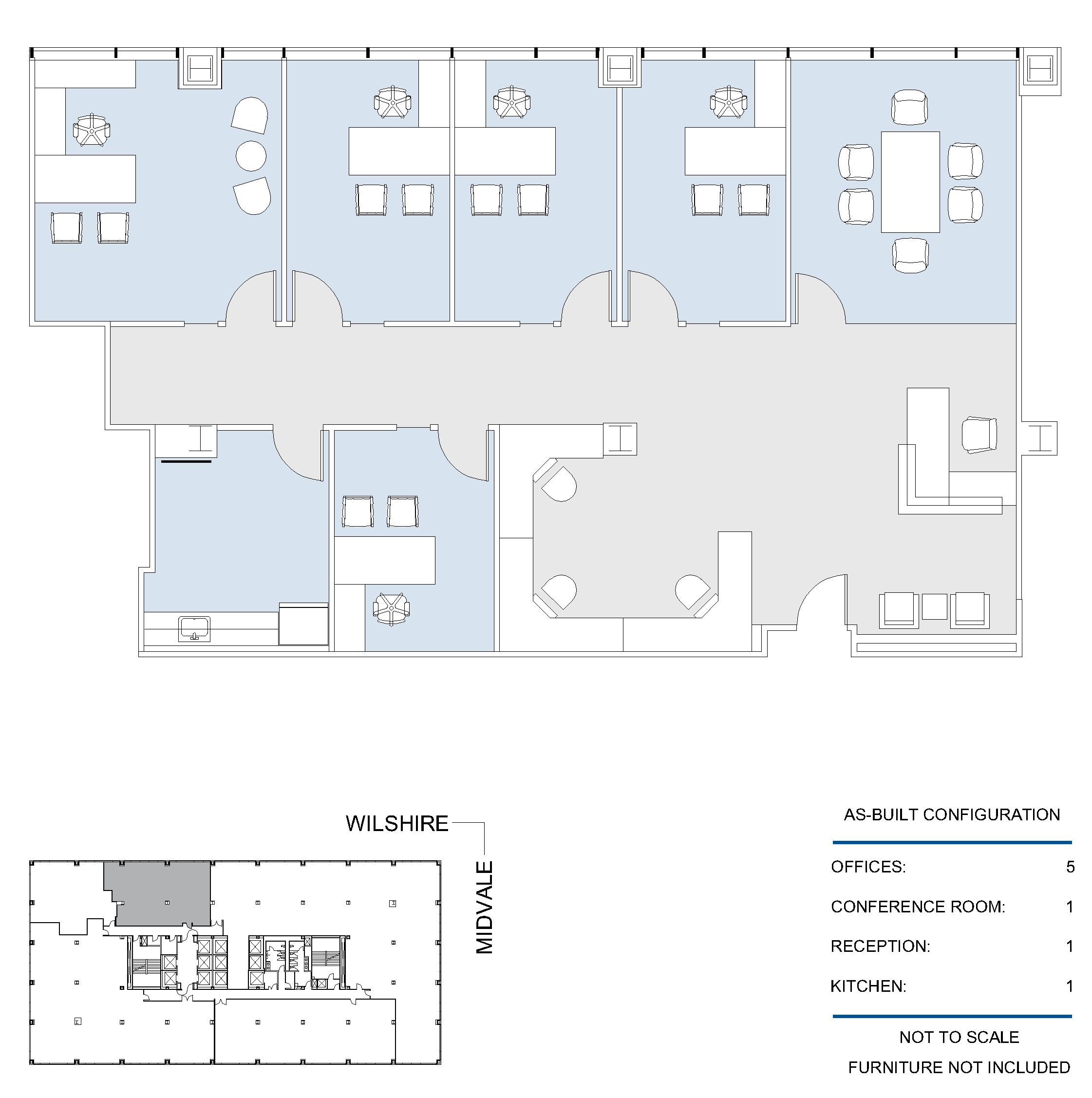 6 window offices, 1 interior office, windowline conference room, open work area and reception area.
